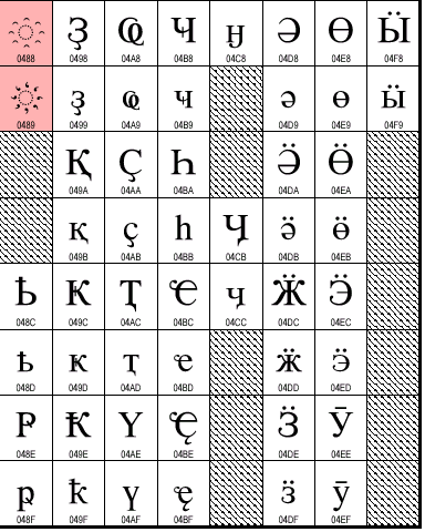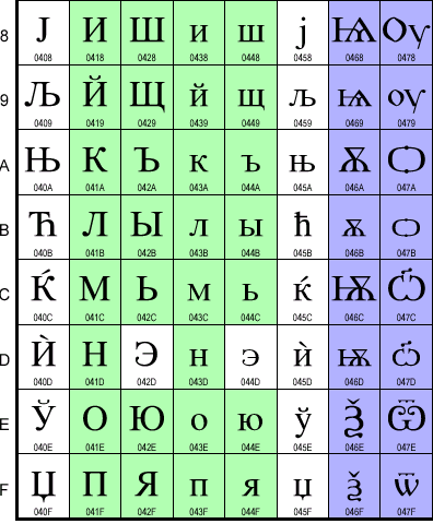 и "Old Cyrillic yest". Под буквами на позициях 047С и 047D подразумевается,